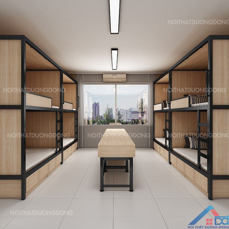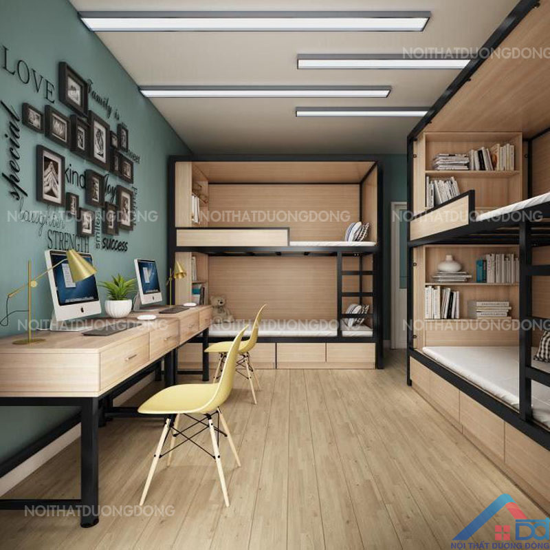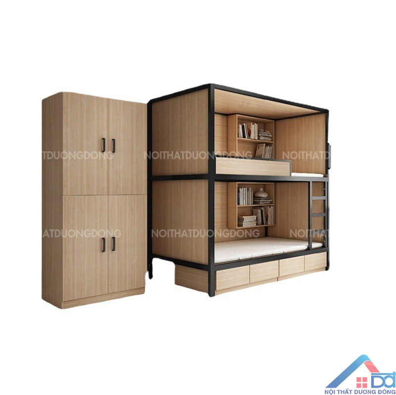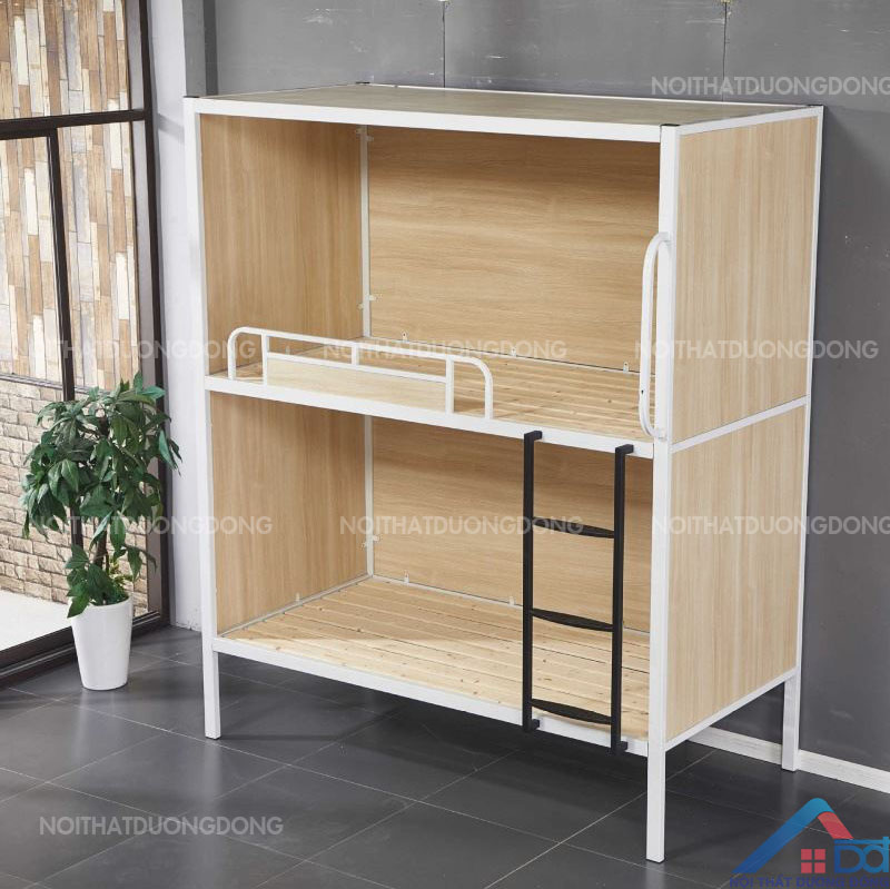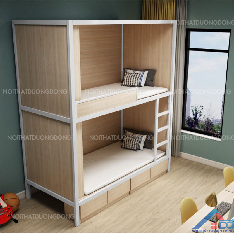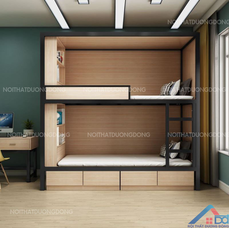 Giường sắt 2 tầng ký túc xá hiện đại -GT 19 với các mảng tường gỗ chắc chắn, hiệu quả khi sử dụng