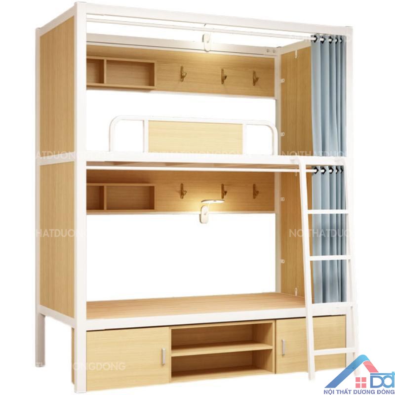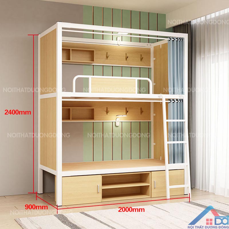 + Sản phẩm được tích hợp thêm nhiều công năng tiện lợi cho việc sử dụng: Để ngủ, có thêm khu vực để giày dép, treo quần áo, hộc tủ trang trí. hoặc để những món đồ cá nhân. Đặc biệt, mẫu giường này cũng có rèm treo. Đảm bảo được sự riêng tư cần thiết cho người dùng trong quá trình sử dụng sản phẩm được tối ưu nhất.