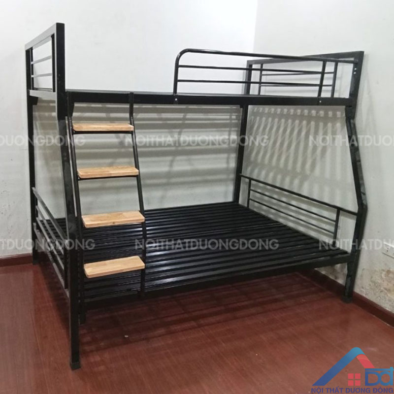 Giường sắt lệch tầng khung sắt hộp vuông rộng 1m4 hiện đại
