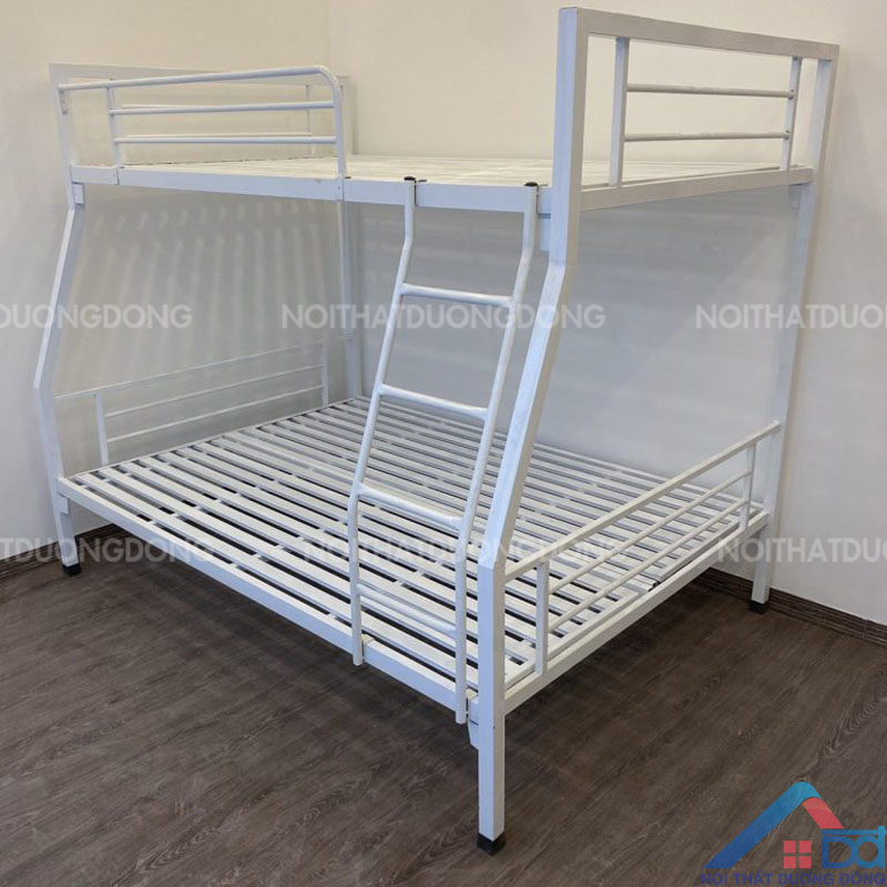 Giường sắt lệch tầng khung sắt hộp vuông rộng 1m4 màu trắng hiện đại
