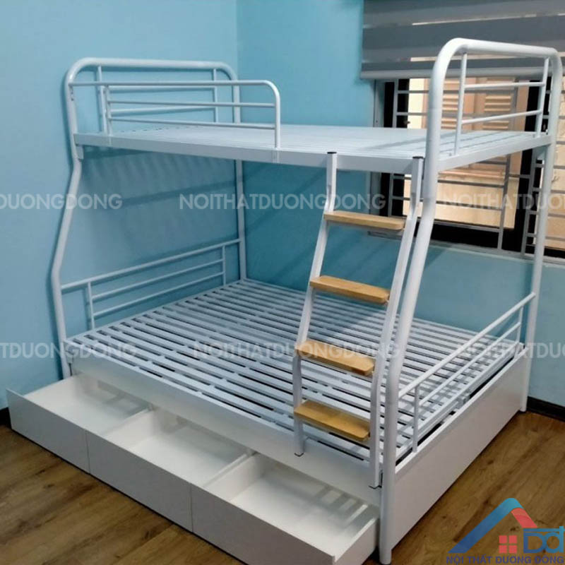Giường tầng lệch tầng ống tròn có ngăn kéo gỗ tiện dụng -GT 29 màu trắng