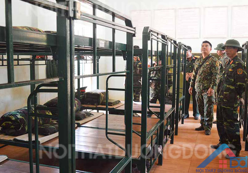 + Thiết kế tối giản, tối ưu không gian sử dụng. Giường được bố trí 2 tầng. Rộng 1m. Là diện tích phù hợp cho sinh hoạt cá nhân của từng chiến sĩ. Nhờ đó, mà không gian phòng ốc trong quân đội cũng được đảm bảo sự ngăn nắp và hợp lý.