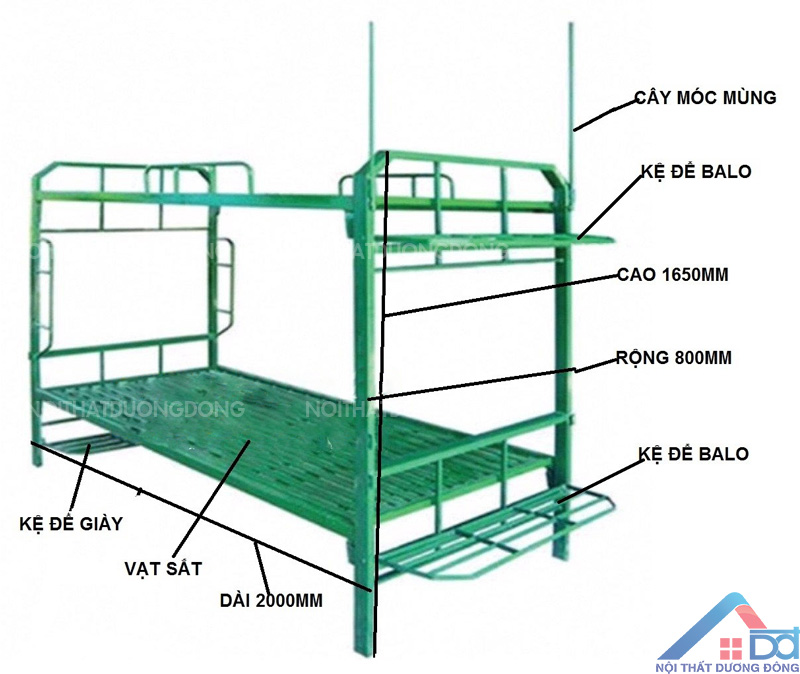 Giường tầng sắt quân đội dát sắt -GT 34 chắc chắn và bền bỉ
