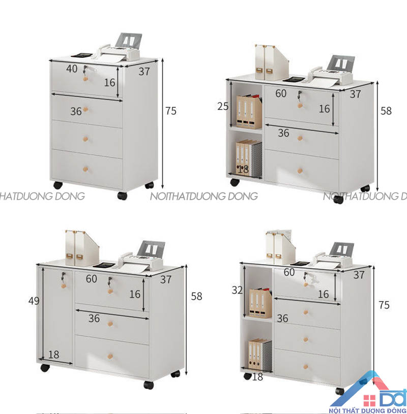 Kích thước đa dạng của Hộc tủ di động văn phòng hiện đại -DĐ 21