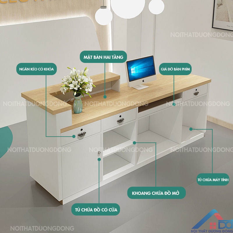 Sản phẩm Quầy Lễ Tân 1m8 mang đến sự đẳng cấp và tính tiện ích cho không gian tiếp đón của bạn. Với thiết kế tinh tế và sự tập trung vào sự tiện nghi, sản phẩm này là lựa chọn hoàn hảo để tạo ấn tượng đầu tiên mạnh mẽ và chuyên nghiệp với khách hàng, đối tác hoặc nhân viên của bạn. Sản phẩm với nhiều màu sắc, phù hợp cho những không gian lễ tân khách sạn, nhà hàng, cửa hàng thời trang, Spa, thẩm mỹ... Đem đến hiệu quả và tính thẩm mỹ tối ưu cho không gian lễ tân. Tham khảo chi tiết sản phẩm cùng những hình ảnh thực tế trong nội dung dưới đây: