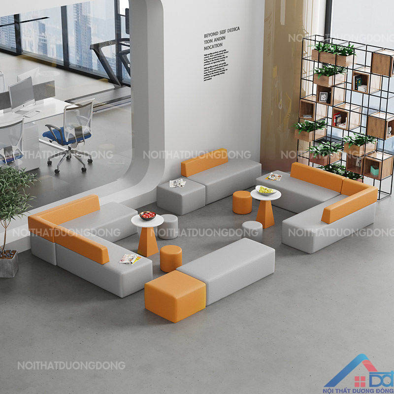 Tạo thành sofa văng dài và có nhiều chỗ ngồi phục vụ cho không gian sảnh chờ của công ty