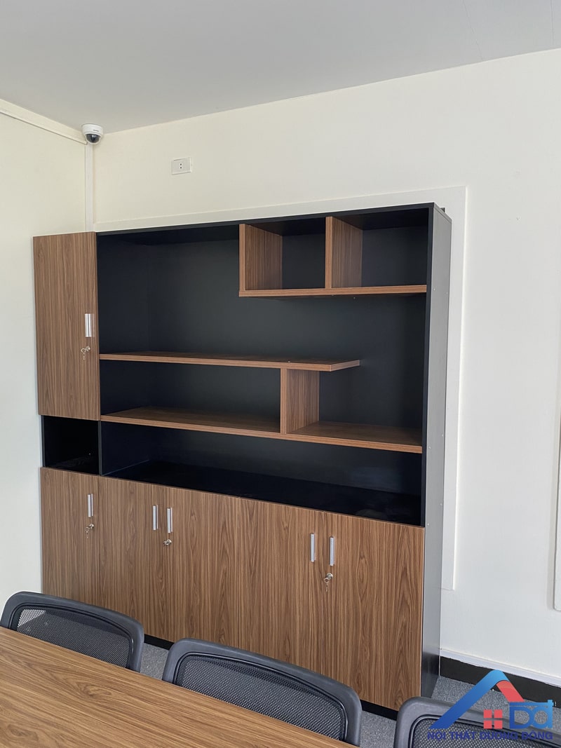 - Chất liệu gỗ công nghiệp đồng bộ với bàn làm việc, tạo sự hài hòa trong không gian.
