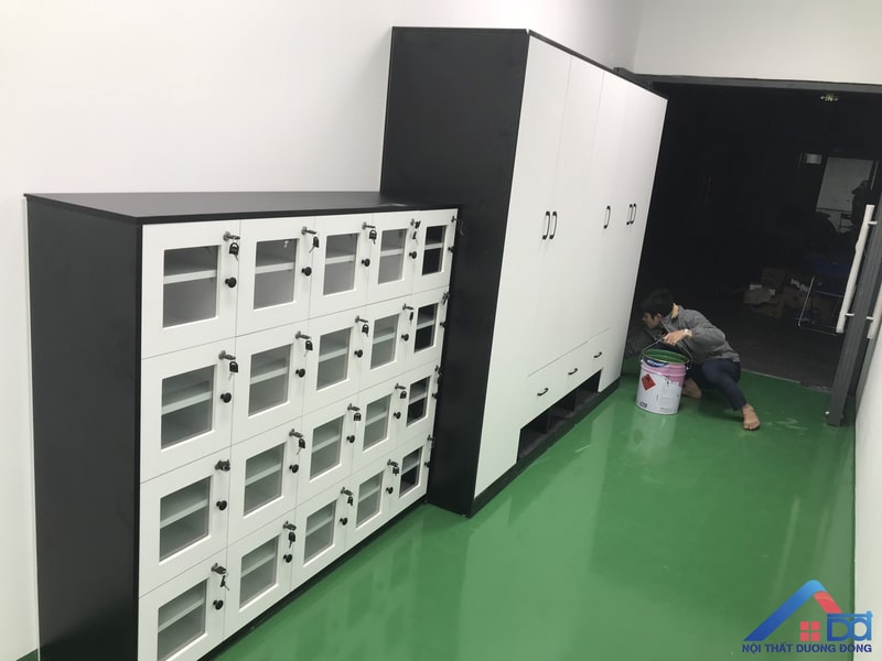 - Chất liệu nội thất: Sử dụng các vật liệu cao cấp như gỗ công nghiệp chống ẩm, kính cường lực và kim loại sơn tĩnh điện, đảm bảo độ bền cao và tính thẩm mỹ.