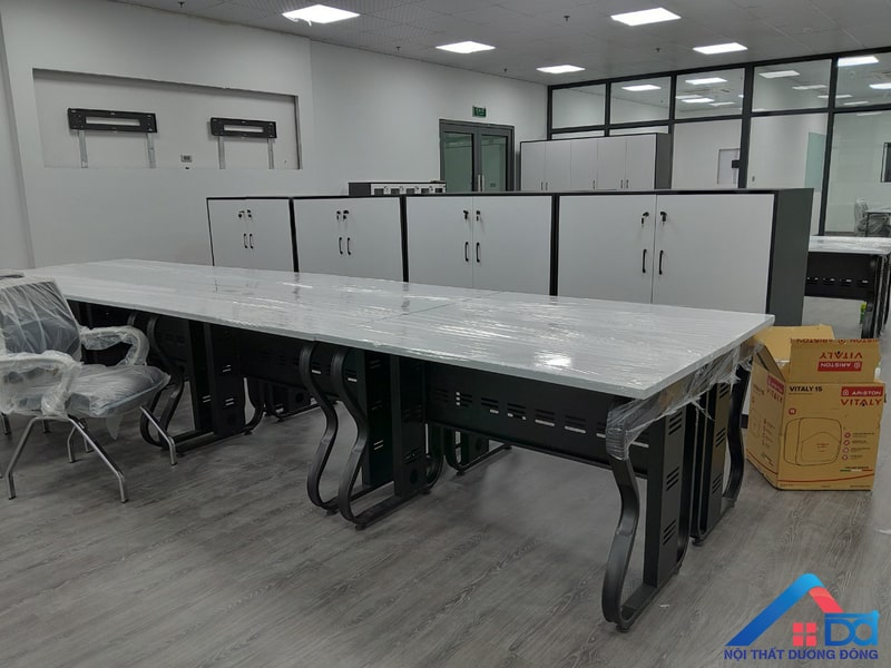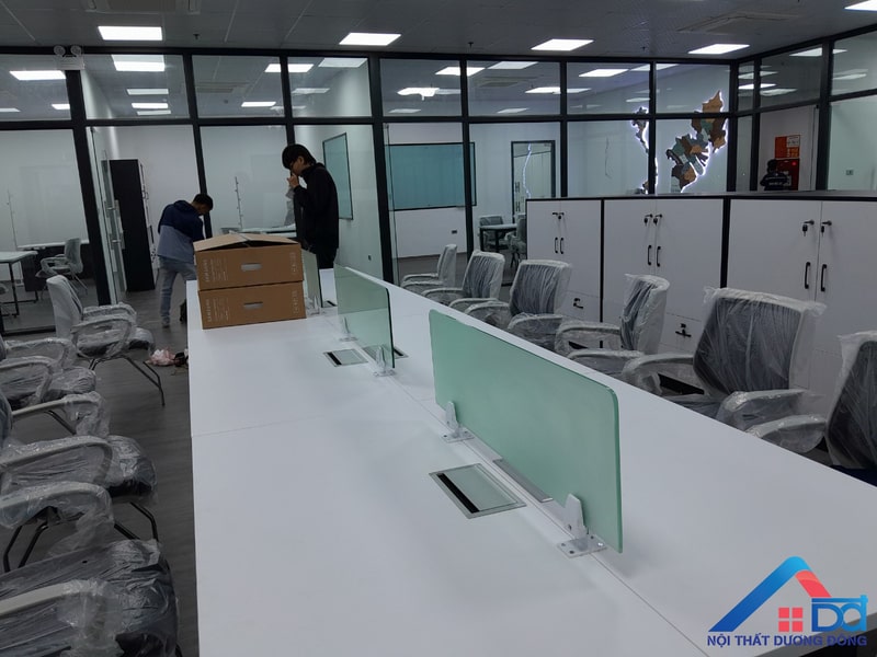 - Lắp đặt hệ thống bàn ghế văn phòng: Thiết kế ergonomic giúp nhân viên làm việc thoải mái, hạn chế các vấn đề về sức khỏe.