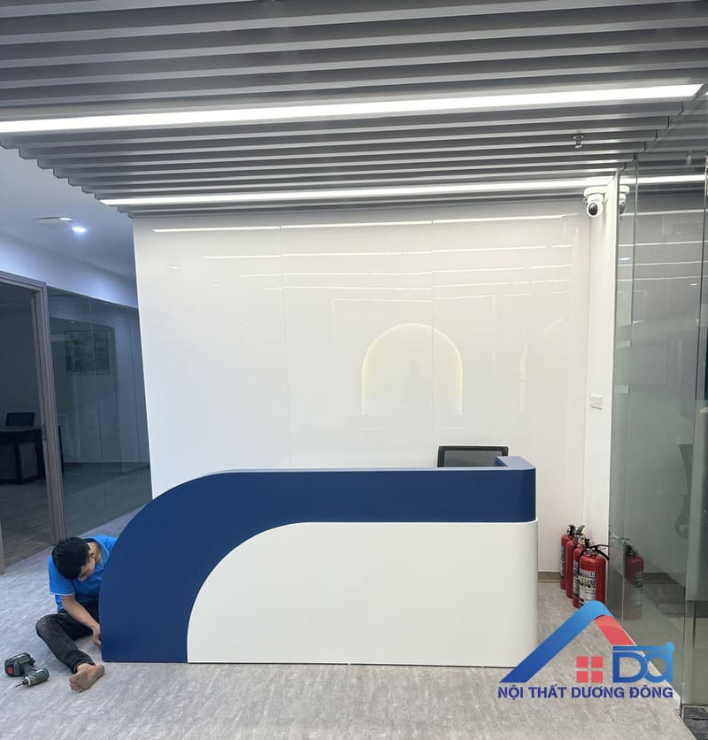 Quầy lễ tân phù hợp với không gian nội thất văn phòng làm việc