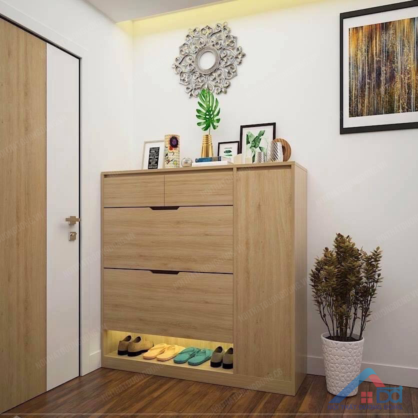 Ngôi nhà của bạn không thể thiếu những mẫu Tủ giầy thông minh đẹp được sử dụng để đựng đồ cá nhân, giày dép tại các văn phòng, cơ quan, nhà hàng, xí nghiệp,…Chiếc tủ được làm bằng gỗ nhập khẩu cao cấp, được phủ melamin bóng mịn chống trầy xước. Tủ có thiết kế 3 cánh và có tay nắm kéo, cùng các ngăn để giày dép riêng biệt.