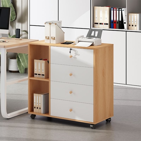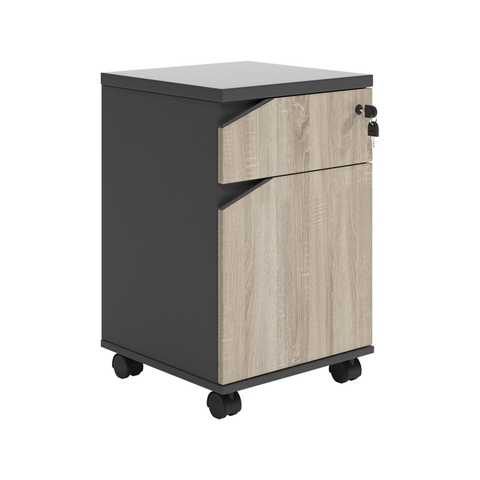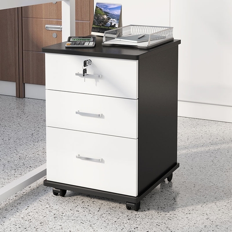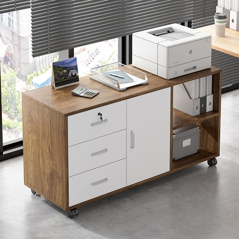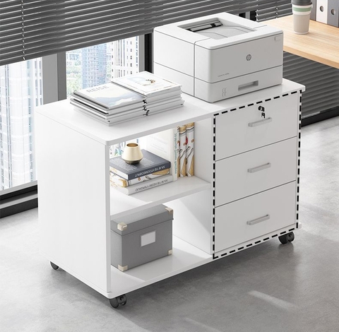 Tủ phụ melamine cao cấp được làm từ tủ gỗ công nghiệp, có 2 khoang cánh mở, ở giữa có ngăn kéo, tủ được thiết kế di động có báng xe , với thiết kế riêng biệt như vậy nên ngoài chức năng chứa tài liệu đồng thời còn có thể sử dụng làm bàn để máy vi tính (bàn máy tính, bàn vi tính).