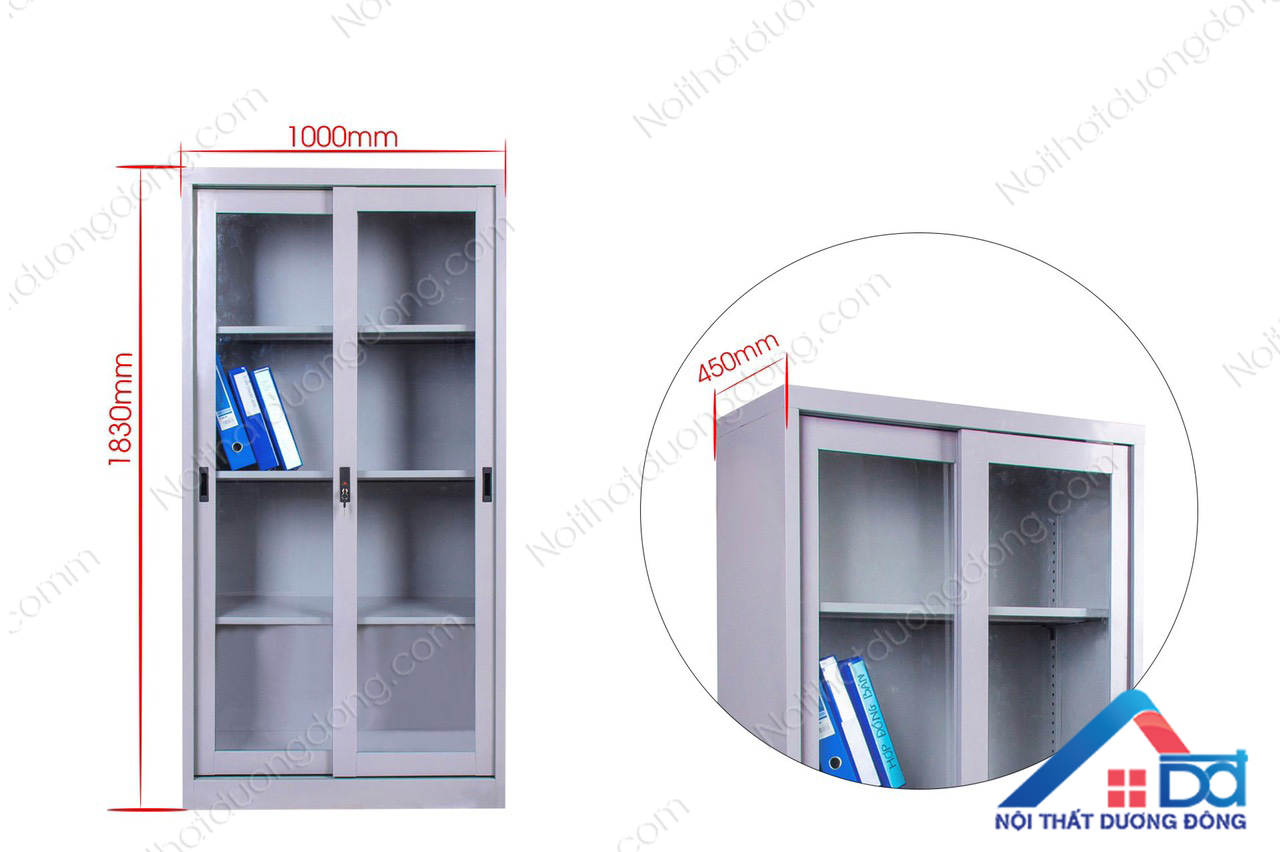 Văn phòng của bạn sẽ không thể thiếu những mẫu Tủ Sắt Văn Phòng 2 Cánh Kính Lùa- TS 03 dài đẹp được sử dụng để đựng đồ cá nhân, hồ sơ, tài liệu, tại các văn phòng, cơ quan, nhà hàng, xí nghiệp,…Chiếc tủ được làm bằng thép cao cấp phun sơn tĩnh điện chống trầy xước. Tủ có thiết kế 2 cánh lồng vào nhau giúp tiết kiệm không gian làm việc, và có tay nắm kéo, ổ khóa cùng các ngăn để tài liệu riêng biệt.
