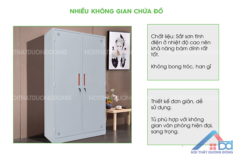 + Tủ có thiết kế vô cùng đơn giản, với thiết kế 2 cánh sắt cửa mở gập. Tạo nên sự đơn giản, dễ dàng khi sử dụng.