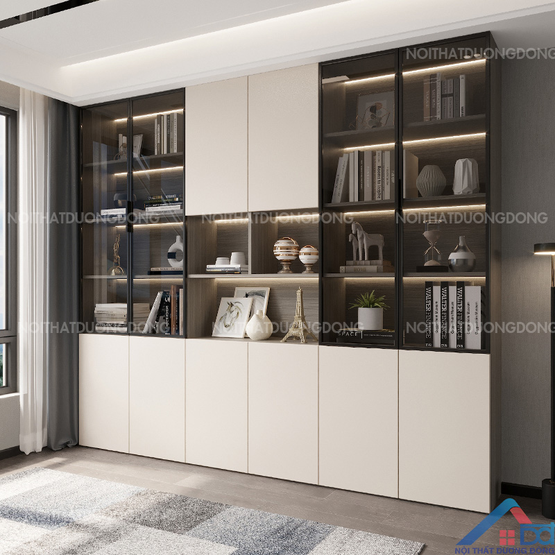 + Không chỉ là nơi đựng đồ, tài liệu, mà tủ còn là nơi để trưng bày những món đồ quý và cao cấp. Sản phẩm nhờ đó phát huy được công năng sử dụng tối ưu, cũng như giá trị thiết thực cho người dùng. Đặc biệt, phần cánh tủ được sử dụng chất liệu bằng kính. Chất liệu này phát huy được rất tốt hiệu quả sử dụng và nhận được sự yêu quý từ khách hàng. Phần tủ ở giữa được bố cục cánh gỗ, tạo nên sự luân phiên, nối tiếp có chủ ý cho thiết kế. Nhờ đó, mà mang lại hiệu quả sử dụng tối ưu và chất lượng cho sản phẩm này.
